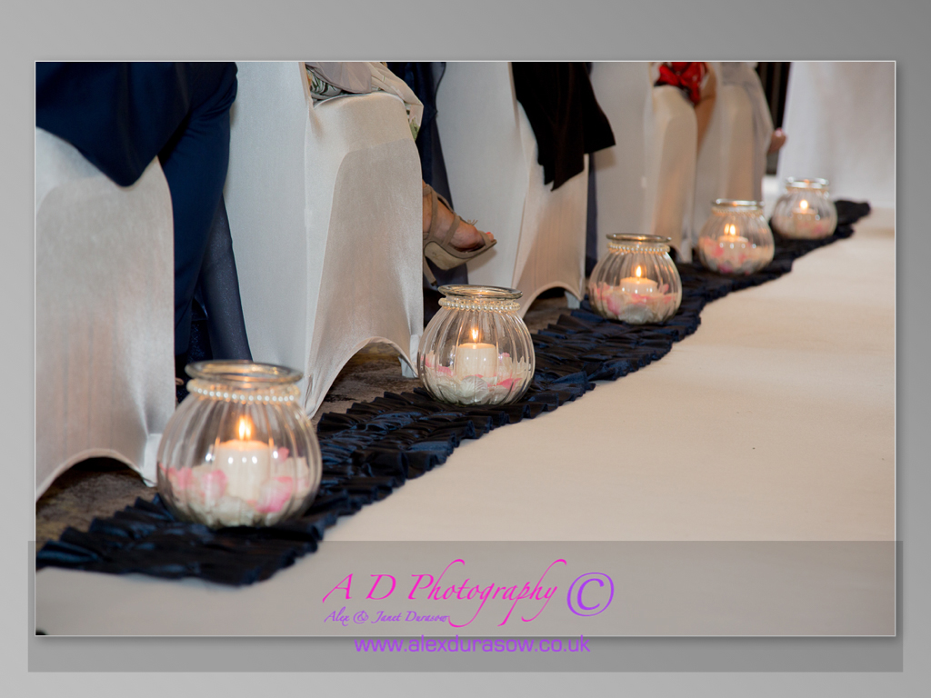 We are really happy to be booked by Jenny and Dean as their Oulton Hall wedding photographers on a popular date in June, and very flattered that the booking came about by kind recommendation from another photographer. After chatting with the couple about their plans - and in secret with Jenny about a surprise she had planned for Dean - we knew theirs would be a really interesting day with plenty of photo opportunities. The girls got ready upstairs and discussed whether Jenny had managed to keep the helicopter she'd booked for Dean a secret from him. We photographed the dress, shoes and flowers and then made sure we were on the golf course a few minutes ahead of Dean's stylish arrival. The couple married in a civil ceremony in the Repton Room and afterwards everyone celebrated outside with Champagne before launching an impressive volley of confetti over the new Mr and Mrs Bowyer. Jenny looked gorgeous in her vintage style lace dress and she had shared with us some ideas about the type of photographs she wanted - arty, romantic and the couple as a small element within a surrounding scene - and the ones she didn't want - anything cheesy and not too many smiling for the camera. We tried hard to visualise the Oulton Hall wedding photographs which would best appeal to Jenny, whilst keeping to the elegant and classic style we are well known for, and we decided that as the weather forecast was risky later on, that it would be best to work outside as much as possible before the wedding breakfast, leaving the interior shots for later. This worked well, as it did start to drizzle during the early evening, which was our cue to spend some relaxed and quiet time photographing Jenny and Dean on the gallery and staircase before everyone headed to the Claret Jug for the evening party, which featured a casino and later, a surprise for everyone, a spectacular firework display, although by that time it was tipping it down, but we were determined that we would get some great images to complete the couple's storybook. Thank you so much for booking us to capture your wedding celebrations at your beautiful venue and congratulations on your marriage!